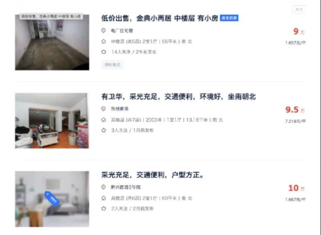 贝壳找房平台显示,在张家口,总价10万元左右的房源足足有数十套。
