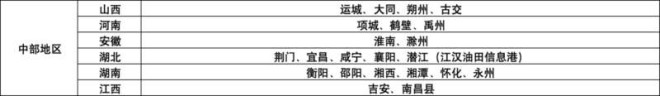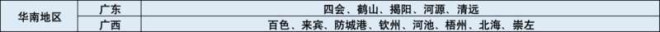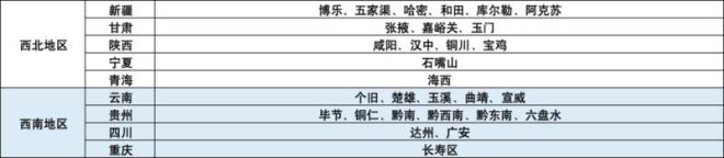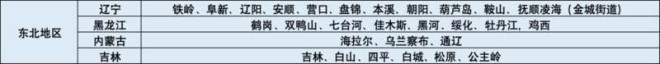 黑龙江、吉林、辽宁、内蒙古;新疆、青海、宁夏、甘肃、陕西;云南、贵州、四川、重庆;河南、山西、湖北、湖南、安徽、江西;广东、广西;福建、山东;河北、天津。