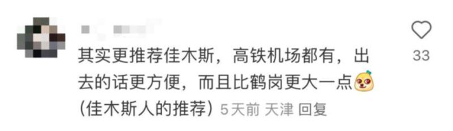 在一条分享鹤岗租房的帖子下面,一位来自佳木斯的老铁推荐起了自己的家乡: